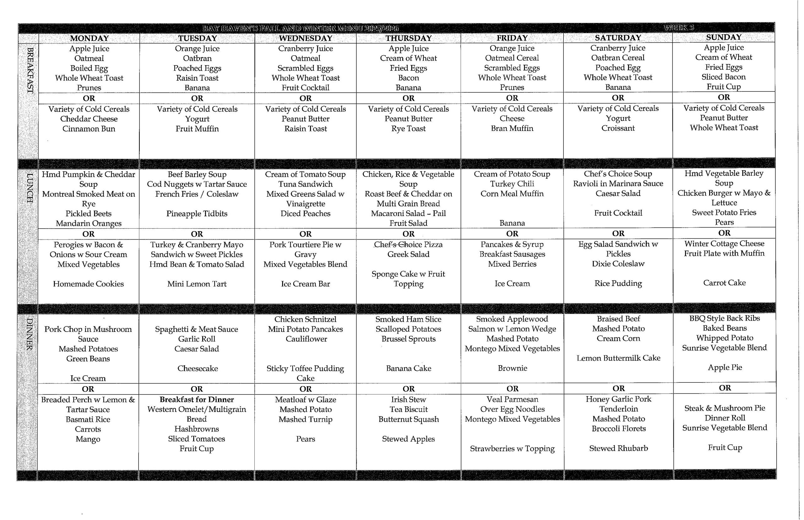 Our menus are designed to provide balanced, wholesome options while still offering variety and enjoyment at every meal.