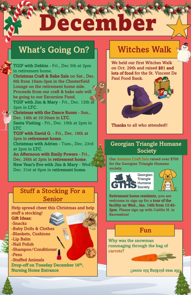 If you have any questions, please do not hesitate ask Lillian Kelly, Director of Nursing or Roseanne Beaupre, Retirement Home Manager.